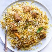 I like to serve it with plain rice or whole wheat pita bread(making my life easier 😉 ) along with Indian kachumber salad, and onion raita.